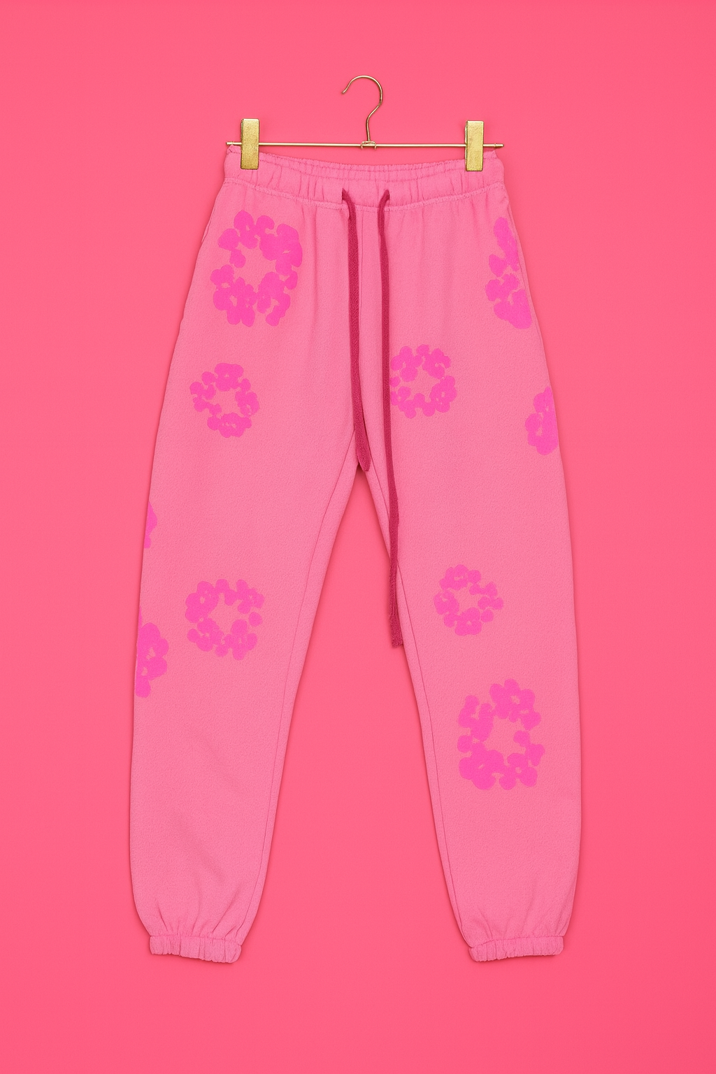 These floral-print joggers bring the perfect mix of cozy and cute. Designed with a relaxed fit, elastic waistband, and cuffed ankles, they’re made for lounging in style or stepping out effortlessly. The bold petal pattern adds a playful statement while keeping the look polished and on-trend.