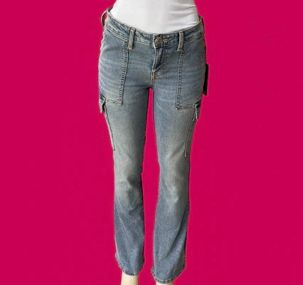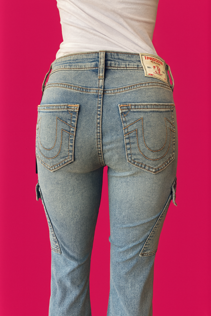 Our Cargo Flare Denim. Designed with a flattering mid-rise fit, roomy side cargo pockets, and a vintage-inspired flare leg, these jeans bring a touch of Y2K edge to your everyday look.