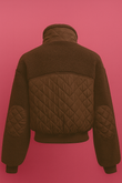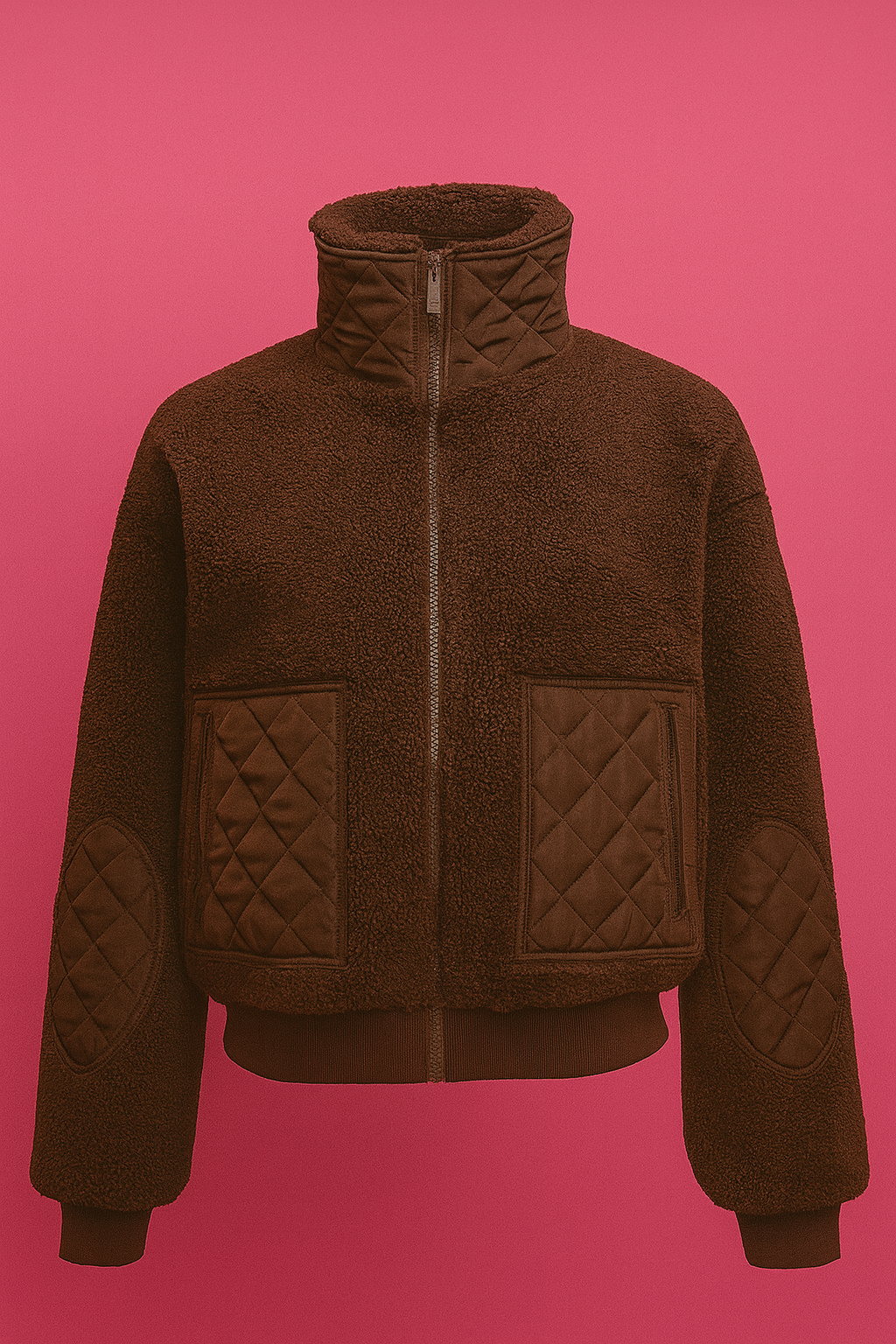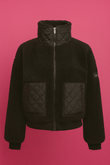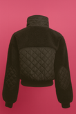 Meet your new cold-weather go-to. This bomber jacket delivers major cozy energy while still serving an elevated, sporty look. The soft teddy exterior keeps you warm, while the diamond-quilted chest and back panels add structure, texture, and an urban designer feel.