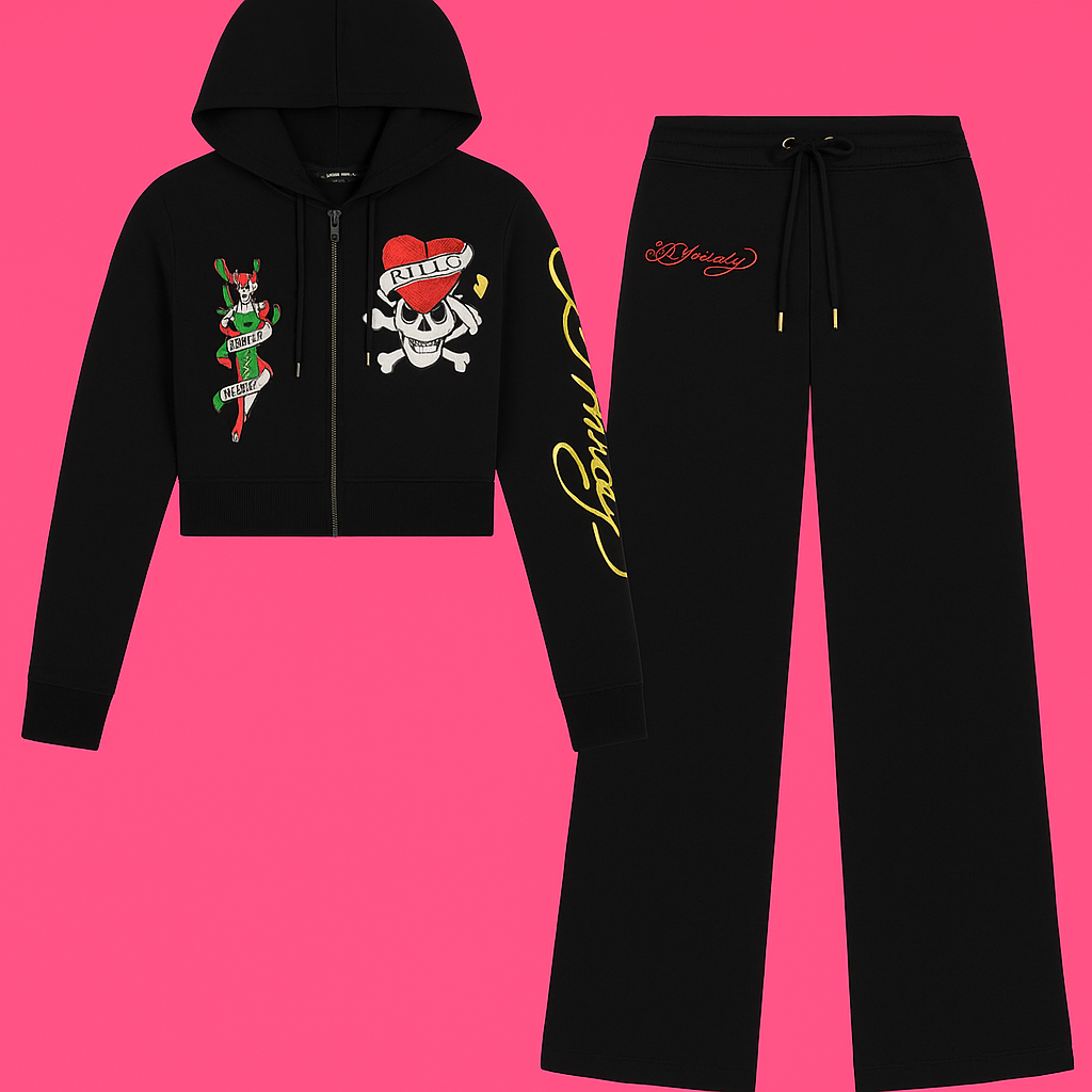 Turn heads in this tattoo-inspired lounge set that perfectly blends soft girl energy with rockstar edge. Whether you’re running errands, chilling in style, or showing off that confident, glam-girl vibe.