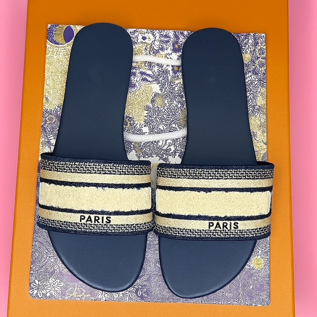Slip into effortless elegance with these Paris Step Slides. Featuring a sleek silhouette, cushioned footbed, and the iconic monogram strap, these slides blend high fashion with everyday comfort. Perfect for casual luxe looks, vacation fits, or just adding a designer touch to your daily stroll.