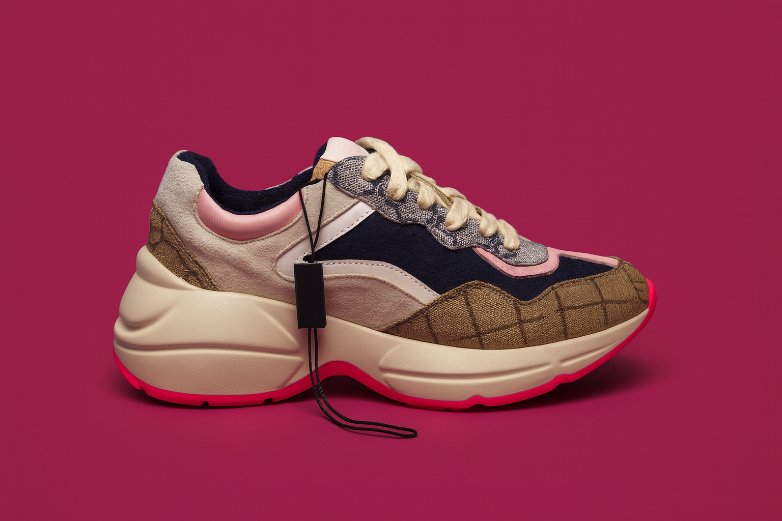 Step into bold luxury where streetwear edge meets high-fashion design. Crafted with a mix of suede, textured canvas, and smooth leather, these sneakers are all about statement style and everyday comfort. The chunky sole adds height and style while the soft blush, navy, and neutral tones create a look that’s both versatile and eye-catching.