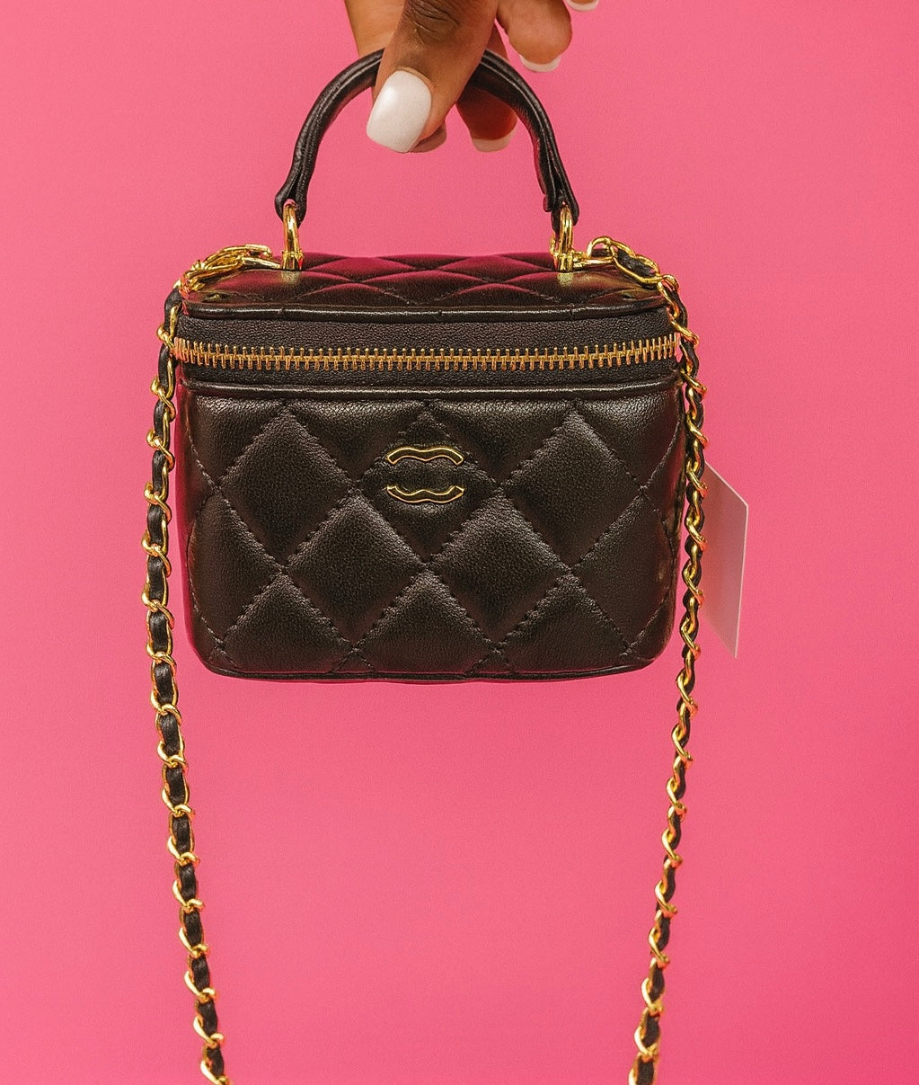 Structured elegance meets runway-prepped polish. Inspired by vanity cases, this compact box bag blends vintage glam with modern refinement and everyday ease with lots of space.